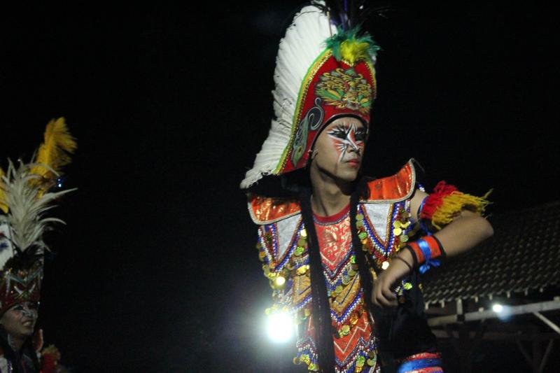 Topeng Ireng merupakan kesenian tari tradisional khas Magelang, Jawa Tengah, yang tumbuh subur di lereng Gunung Merapi. Nama “Topeng Ireng” berasal dari akronim Toto Lempeng Irama Kenceng, yang berarti menata lurus dengan irama cepat dan penuh semangat. Awalnya kesenian ini dikenal dengan sebutan Dayakan, karena kostum penarinya menyerupai pakaian suku Dayak dengan warna-warna cerah dan hiasan bulu yang mencolok.